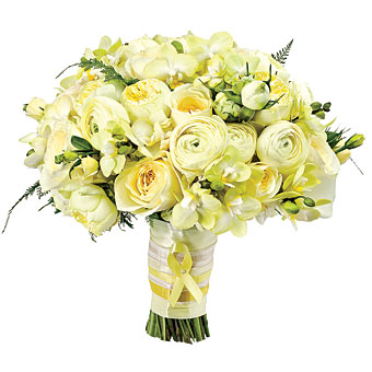 Bouquet de Rosas enananas Importadas, acompañadas de fino follaje de novia. Incluye cinta de Organza.