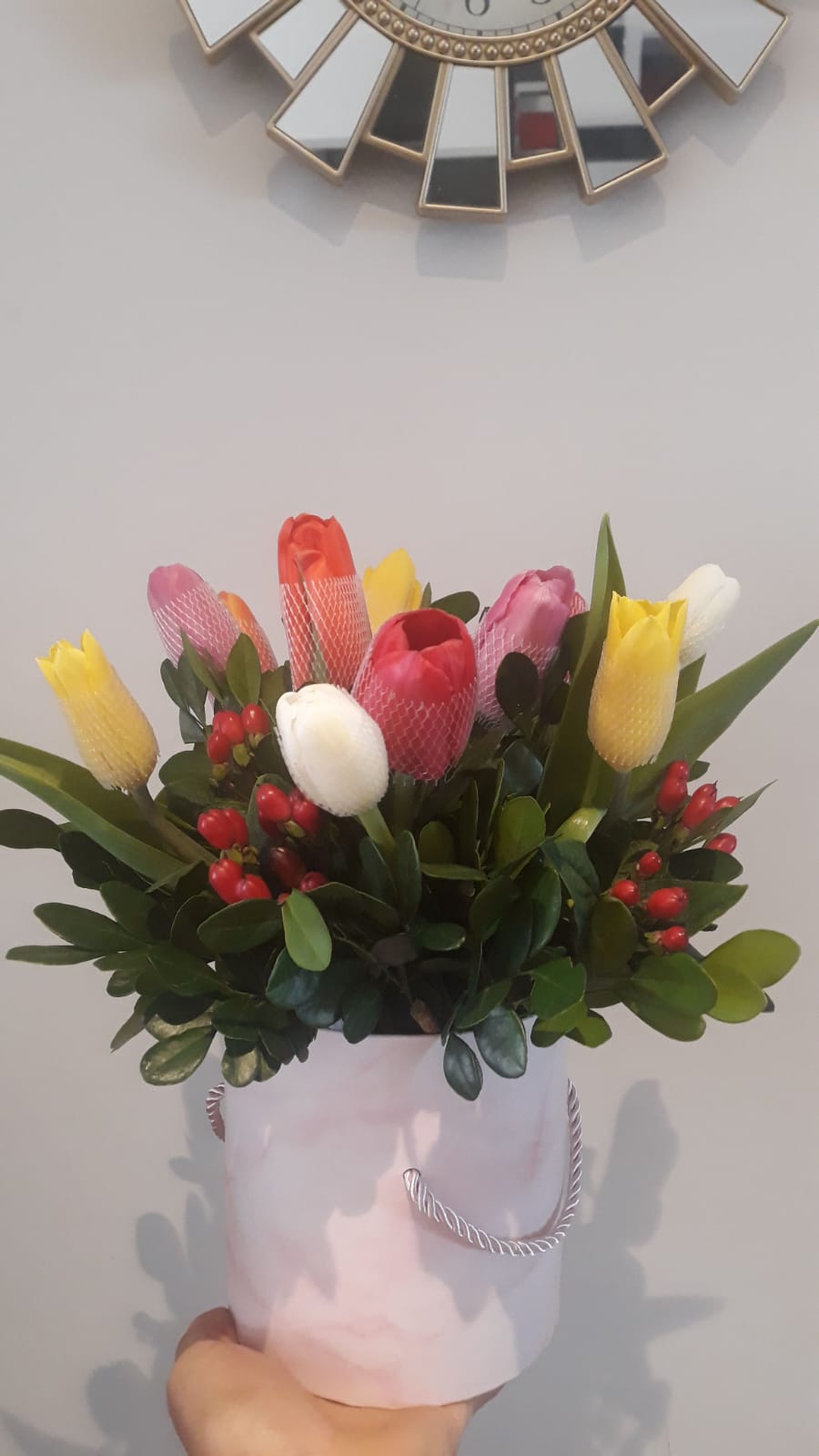 Box con 12 tulipanes + follaje comunicarse al whatsapp 993182828 /993182746