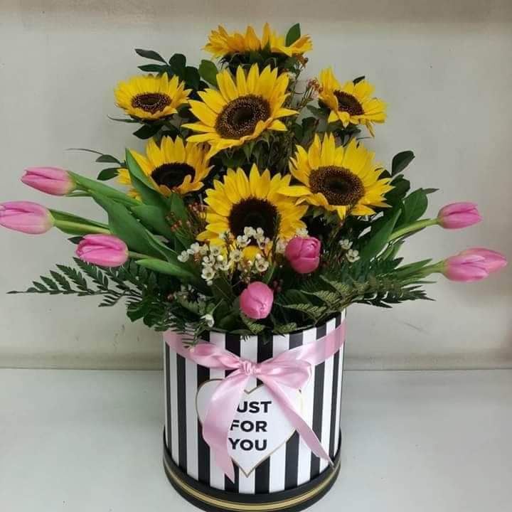 Box con 7 tulipanes del color de su eleccion +girasoles +follaje comunicarse al