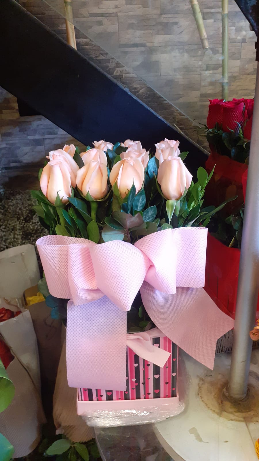 Box con rosas importadas + follaje a 90 soles, comunicarse al 993182746, 993182828 para verificar stock, horario de atencion 9am a 7pm, delivery 9am a 7pm