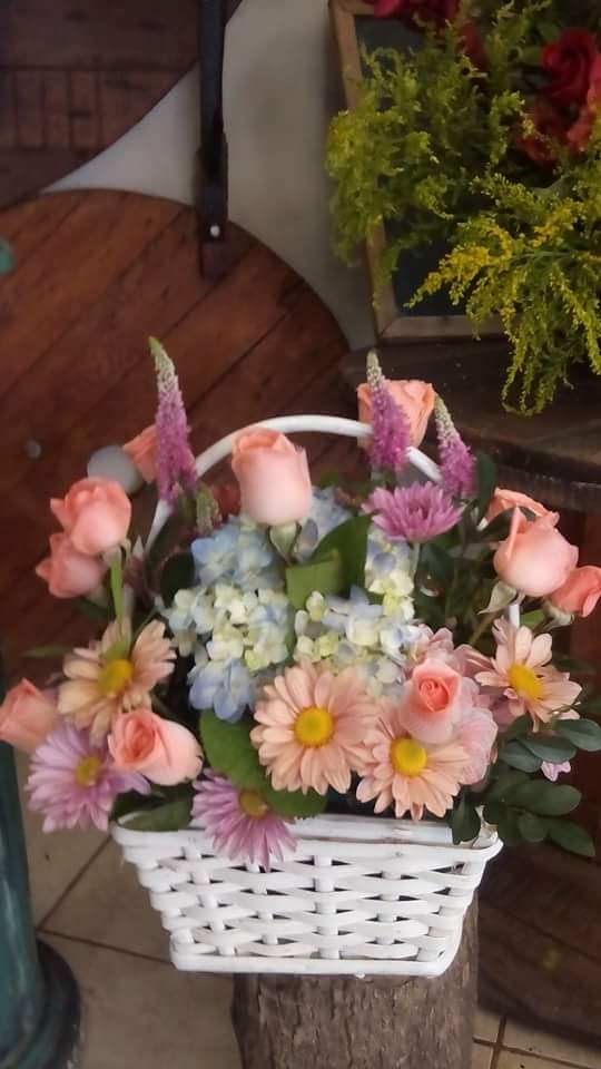 canasta con 12 rosas colores pasteles combinados con variedades y follajes llamar al 2634648