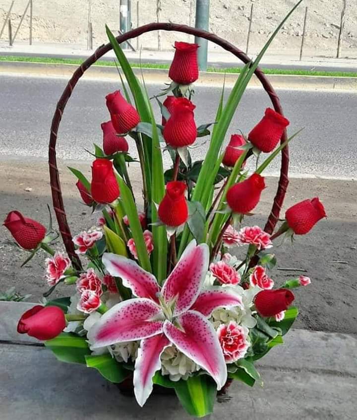 Canasta con rosas importadas + lilium a 120 soles, comunicarse al 993182828, 993182746 para verificar stock de producto, Horario de atencion 8am a 7pm, envio por delivery 9am a 7pm