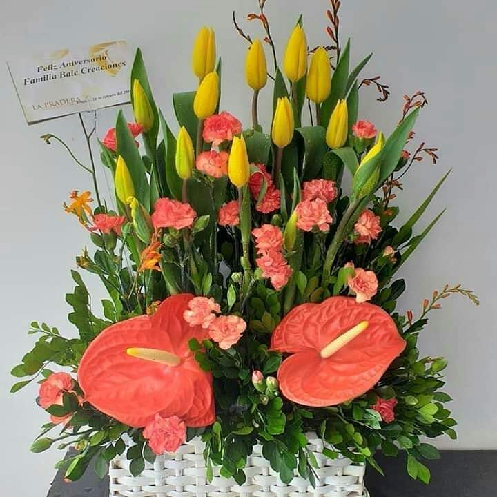 canasta con 12 unidades de tulipanes + liliums +claveles +follaje 200 soles comunicarse al 993182828