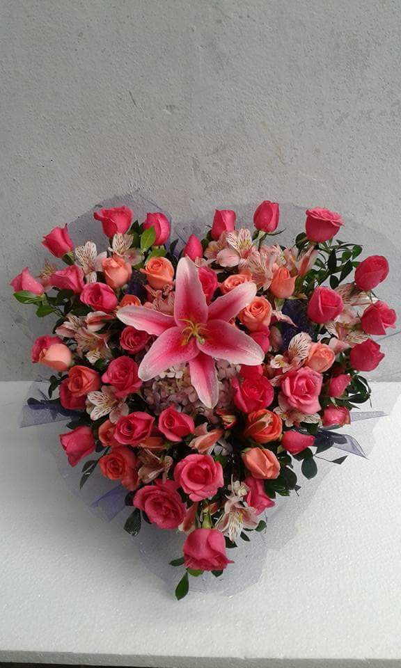 Corazón de rosa acompañado de astromelias ideal para el nacimiento de la nena ,lleva 36 rosas importadas