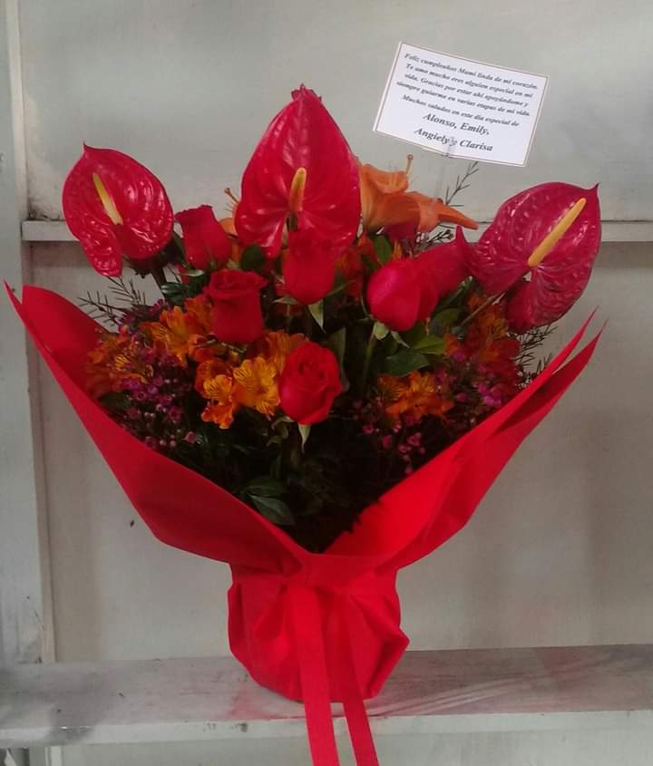 florero con 12 rosas + follaje + anturios +envoltura de tela a 160 soles comunicarse para coordinar su pedido solo al whatsapp al 993182828 /993182746