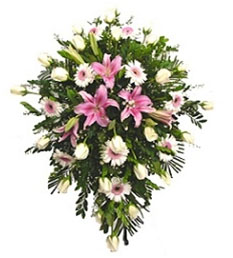 Manto especial liliums cartuchos rosas gladiolo y follajes finos