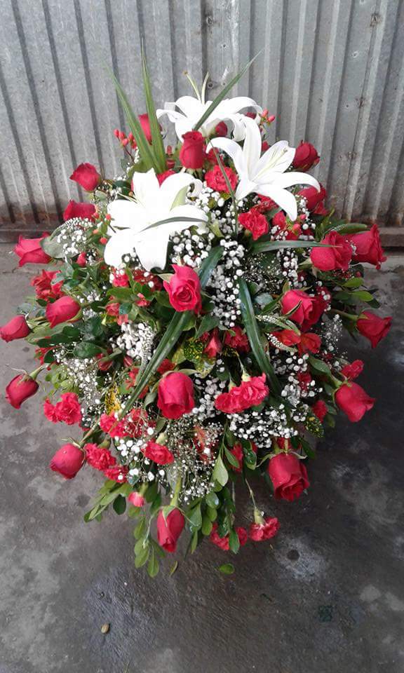 manto de cajon de solo rosas acompañados con liliums y follajes .Los colores al gusto del cliente consultar stock de colores.