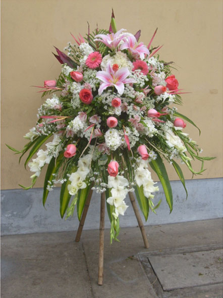 Manto tonos rosados gladiolos margaritas astromelias y rosas importadas