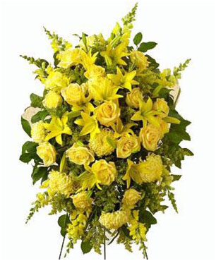 Manto tonos amarillos con liliums y rosas amarillas variedades amarillas gladiolo y follajes