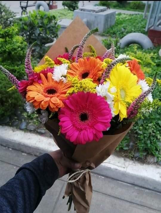 ramo primaveral de gerberas + follaje comunicarse al whatsapp 993182828 /993182746