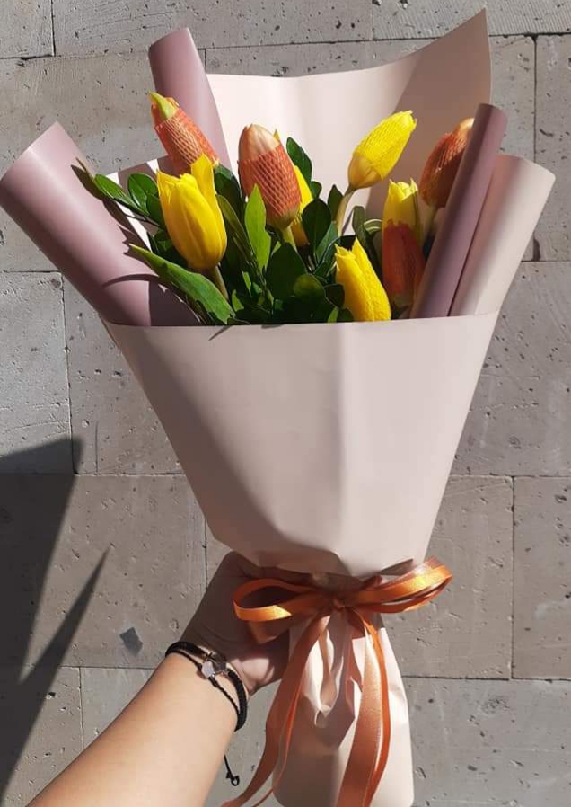 ramo con 8 unidades de tulipanes +follaje 100 soles comunicarse al 993182828