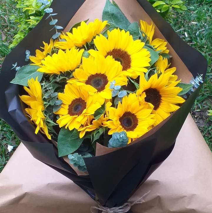 ramo de girasoles +follaje y envoltura 90 soles no incluye envio costo adicional segun distrito comonicacion solo por whatssapp al 993182828