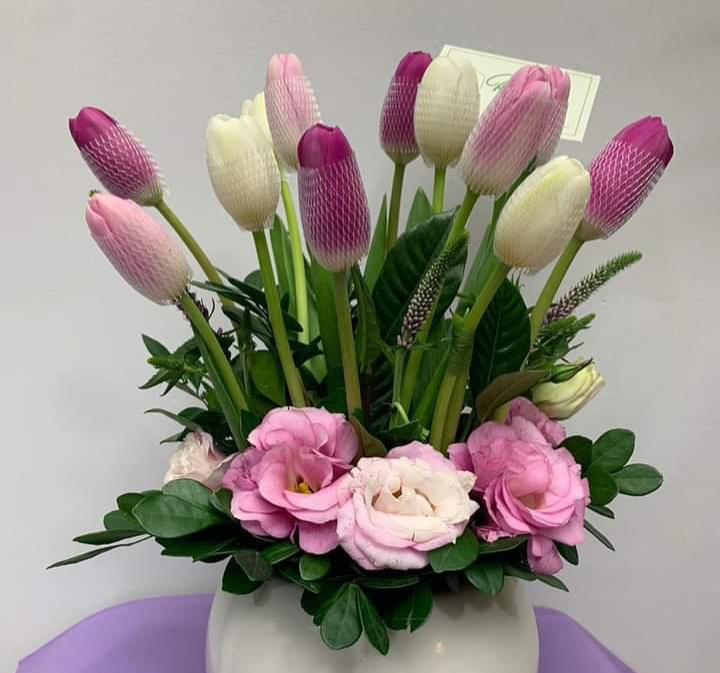 arreglo con 12 tulipanes tonos pastel costo 180 soles comunicarse al whatsapp 993182828